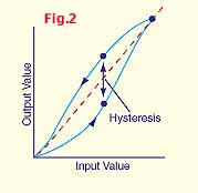 Hysteresis describes the maximum difference, as a percentage of full scale, between the data points in a ramping from zero to full scale and back to zero again (See Figure 2). If the manufacturer tells us that the maximum error due to hysteresis is+/- 0.15% FS then, using the pressure transmitter in the above example, the maximum difference at any point within the 0 to 100 psi range is ±0.15 psi. Our accuracy picture is now a little more complete. Combining non-linearity and hysteresis our sample pressure transmitter has an accuracy of +/- 0.65% FS.