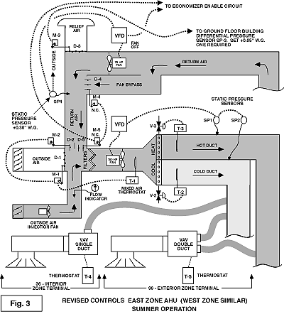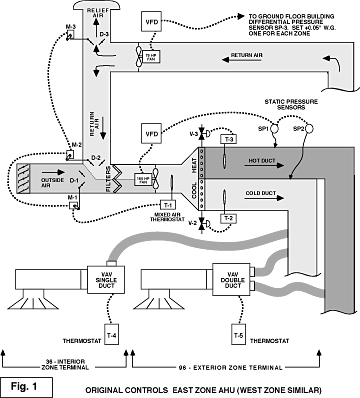 These pressure sensors controlled the speed of the return fans as shown in Fig. 1. This method of control failed for two reasons: